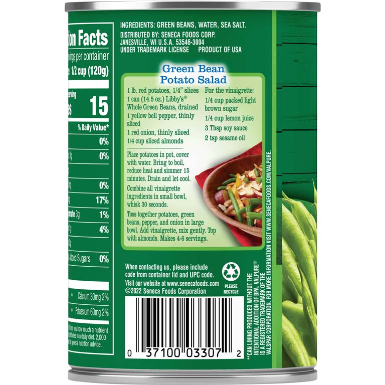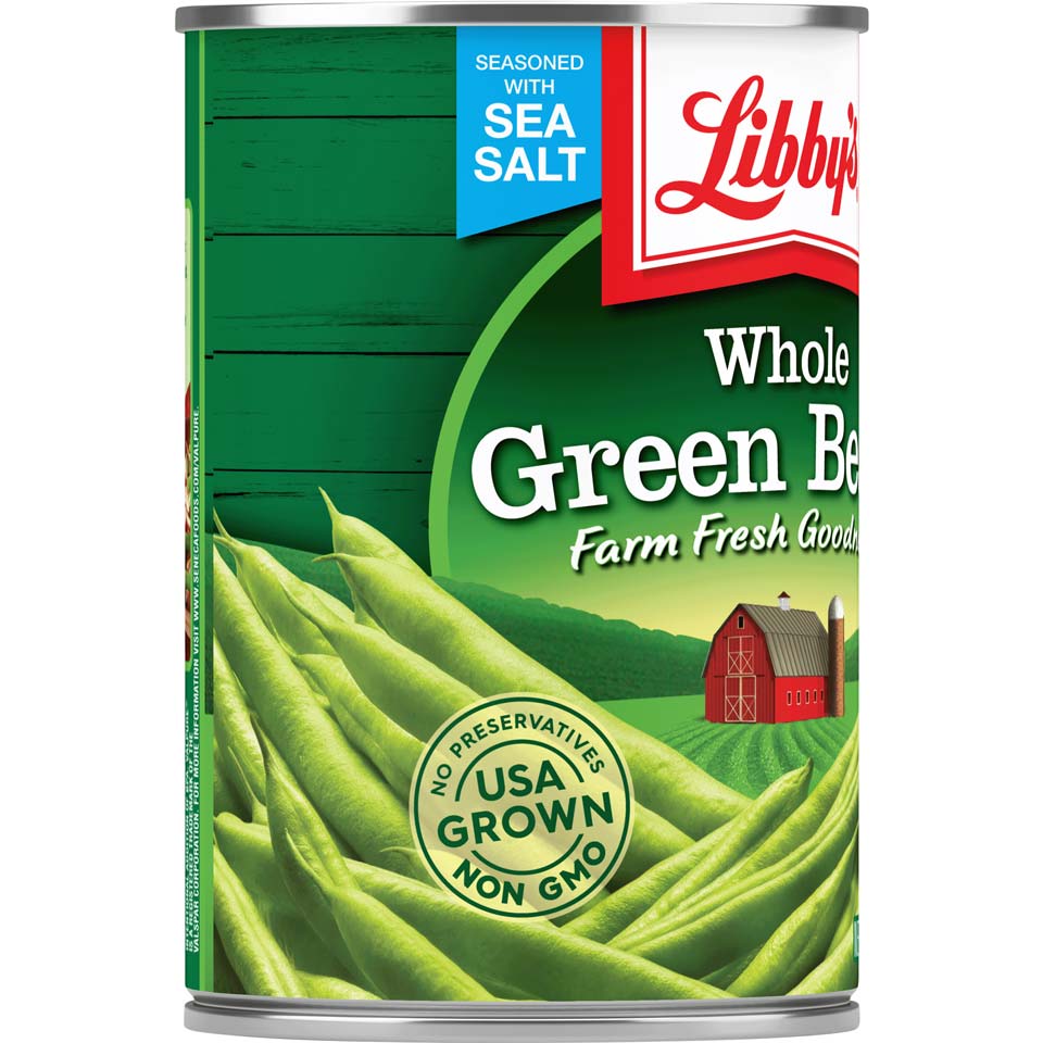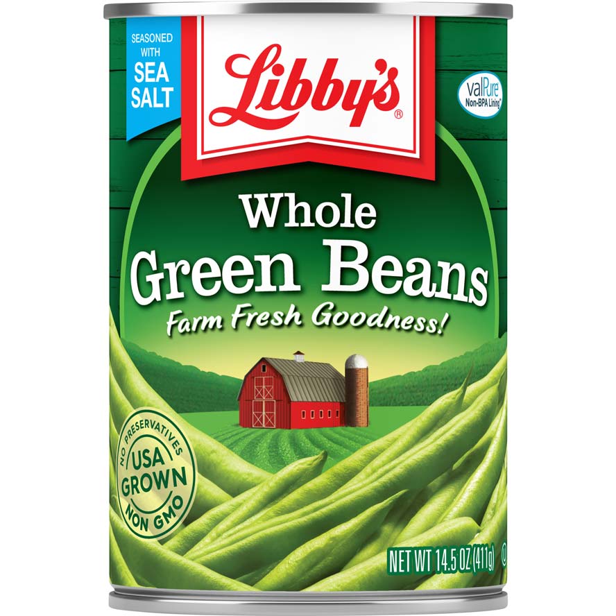 Libby’s Whole Green Beans are picked fresh and packed within hours to deliver a tender texture in every bite. These 14.5 oz. canned whole green beans are made with just green beans, water, and sea salt. With a mild, subtly sweet flavor, Libby’s Whole Green Beans are perfect as a side dish or a versatile addition to your favorite casseroles, salads, and stir-fries. Grown in the USA, Libby’s Whole Green Beans brings quality and freshness straight to your table.